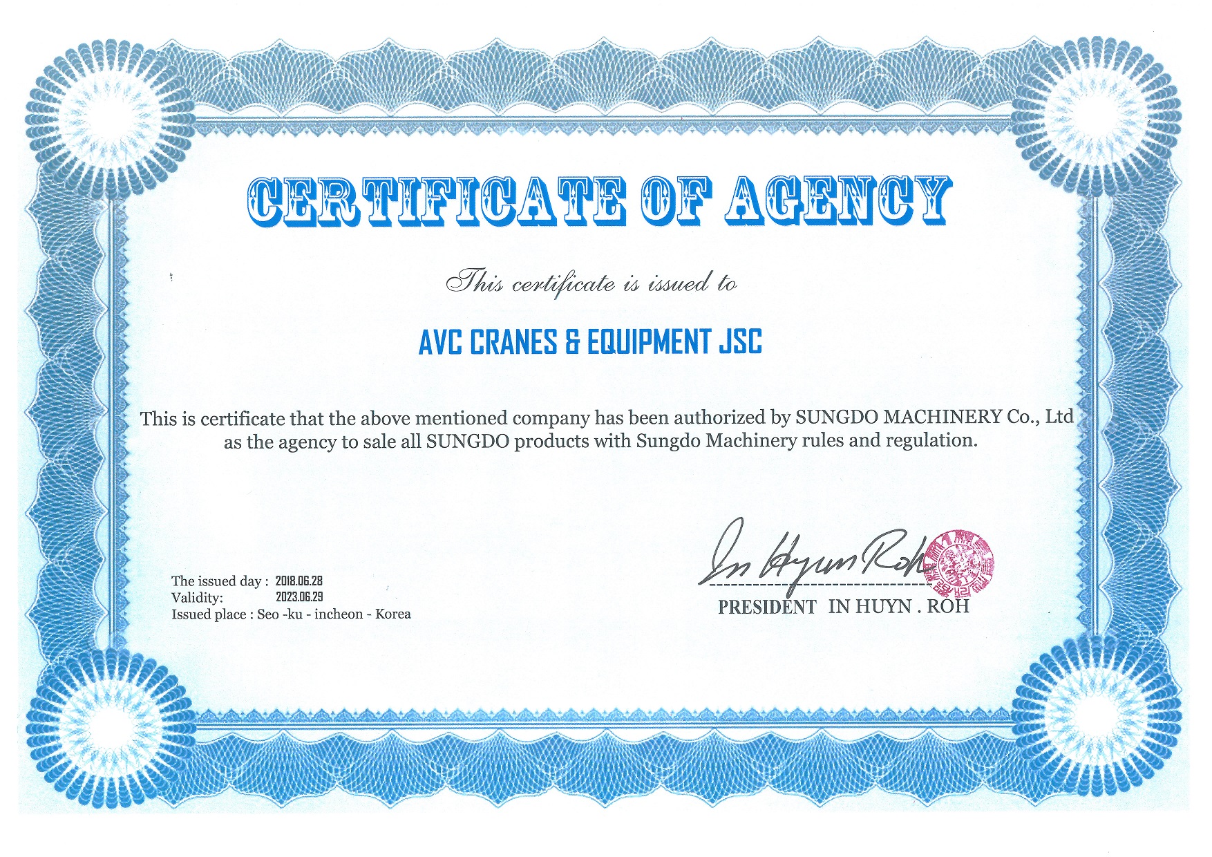 Giấy chứng nhận đại lý của Sungdo/Hàn Quốc